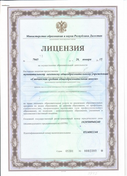 | Полное наименование образовательной организации* | Муниципальное казенное общеобразовательное учреждение "Санчинская средняя общеоразовательная школа" |
