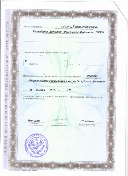 | Язык образования | Обучение ведется на Русском языке, а даргинский и иностранный ( английский)- изучаются как отдельные предметы. |