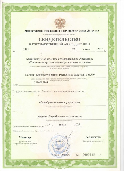 Администрация МР "Кайтагский район". РД,Кайтагский район, с.Маджалис, ул.Надречная11,индекс - 368590 Контактный телефон учредителя: 12345678901 |